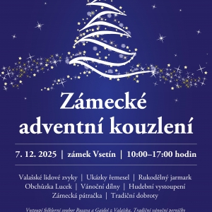 Příjemná atmosféra blížících se Vánoc a kouzlo lidových zvyků spojených s obdobím adventu ovládnou v neděli 7. prosince dění na zámku Vsetín. Návštěvníci se mohou těšit na ukázky tradičních řemesel a lidových zvyků, jarmark rukodělných výrobků, zbrusu novou výstavu Tajemství rumunské lidové masky, vánoční tvoření, setkání s tajemnými Luckami, veselé písničky Gajdoše z Valašska či odpolední folklorní pásmo s Valašským souborem písní a tanců Rusava. Pro děti je připravena pátrací hra a zájemci si budou moci projít všechny návštěvnické prostory zámku, včetně vyhlídky ve věži a expozic. Cukrářky ze SOŠ Josefa Sousedíka Vsetín upečou přímo na místě tradiční vánoční perníčky. Další dobroty si budete moci zakoupit v muzejním bistru a u dalších regionálních prodejců.