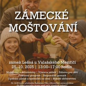 Anglický park i historické interiéry zámku Lešná u Valašského Meziříčí ožijí v neděli 25. října vůní čerstvých jablek, lidovou hudbou a atmosférou tradičního podzimního moštování. Edukačně-zábavná akce pro celou rodinu představí regionální tradice, ekologické hospodaření a pestrost ovocných odrůd na Valašsku.