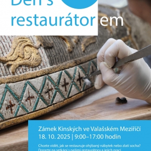 Events and Exhibitions Den s restaurátorem 18. 10. 2025 Kinsky Castle The event starts in 09:00 Photo Gallery Download the photogallery in a zip file Curator Mgr. art. Jitka Galbavá Divínová