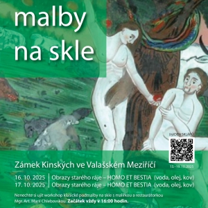 Events and Exhibitions Dílna malby na sklo III. a IV. – VYPRODÁNO! 16. 10. 2025 - 17. 10. 2025 Kinsky Castle The event starts in 16:00 Photo Gallery Download the photogallery in a zip file Download PLAKÁT - Dílna malby na sklo III. a IV. (pdf) Curator Mgr. Kamila Valoušková