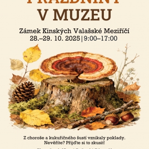 Events and Exhibitions Podzimní prázdniny v muzeu 28. 10. 2025 - 29. 10. 2025 Kinsky Castle The event starts in 09:00 Photo Gallery Download the photogallery in a zip file Download PLAKÁT - Podzimní prázdniny v muzeu Kinských (pdf) Curator MgA. Kateřina Bušová