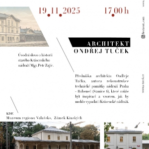 Events and Exhibitions Revitalizce nádraží Praha – Bubeneč 19. 11. 2025 Kinsky Castle The event starts in 17:00 Photo Gallery Download the photogallery in a zip file Download PLAKÁT – Přednáška Ondřej Tuček (pdf) Curator Mgr. Kamila Valoušková