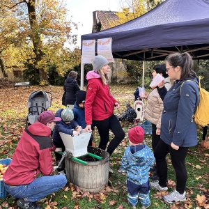 Vůní čerstvých jablek a pohodovou atmosférou tradičního podzimního moštování ožil v sobotu 25. října areál zámku Lešná u Valašského Meziříčí. Na příchozí čekal nabitý program plný ukázek a edukačně-zábavných aktivit tematicky navázaných na sklizeň a tradiční způsoby zpracování ovoce na Valašsku. Lidé se dozvěděli zajímavosti nejen o samotném moštování, ale i pestrosti ovocných odrůd v regionu, správné péči o ovocné stromy či možnostech ekologického pěstování. Na programu byly i tvůrčí dílny, ochutnávky, jarmark s pestrou nabídkou regionálních produktů a řada dalších aktivit. Zájemci si mohli mohli pochutnat na dobrotách od mítních hasičů a dalších prodejců nebo si opéct nad ohněm jablka, brmabory či buřty. Součástí byly i komentované prohlídky historických interiérů. Zkrátka a dobře, to své si v Lešné mohli najít zástupci všech generací. Děkujeme všem, kteří k nám važili cestu a doufáme, že si akci příjemně užili. Pokud jste u nás nebyli, můžete si atmosféru akce nasát alespoň prostřednictvím následujících fotografií. Těšíme se na shledanou u dalších akcí Muzea regionu Valašsko. Jejich přehled najdete ZDE