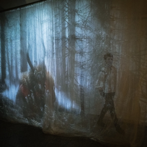 VS: Kromě masek samotných a zmíněných digitálních konceptů to byly také kreativní návrhy vizuálního stylu výstavy. Za zmínku určitě stojí také animace kolegy Václava Ondrouška, který přišel s originálním konceptem promítání na zdvojené záclony v interiérech zámku. Holografický efekt posiluje éterické zobrazení lesního ducha inspirovaného historickou maskou z etnografických sbírek rumunského muzea.