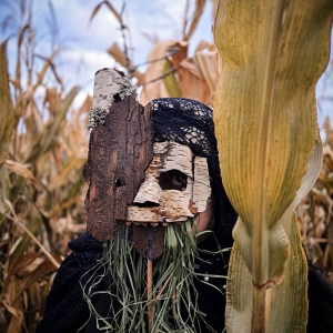 Sabina Psotková (SP): Jakmile spatřilo světlo světa prvních šest masek, shodli jsme se s kurátory muzea na obrovském potenciálu tohoto tématu a lákala nás představa spojení tradičních a novodobých masek v jedné expozici. Václav Skácel přišel s myšlenkou na propojení plenérového kurzu a tvorby objektů masek z přírodnin a recyklovaných materiálů. Tak vznikla další část výstavy, na které se podílelo bezmála třicet studentů, a každý z nich vytvořil originální masku, která personifikovala strachy a fobie současné společnosti.