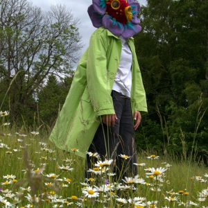 VS: Bylo osvěžující diskutovat se studenty rozmanité autorské nápady. Každý z nich mě přesvědčil jiným přístupem. Za jeden z nejlepších výtvorů považuji alegorickou masku Jolany Horynové, která v měkké, textilní a květinové formě nabízí ironickou reflexi strachu, kombinující popovou estetiku, satiru a rituální ochranu.