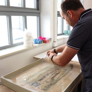 V srpnu našvštívil naše konzervační a restaurátorské pracoviště v zámku Kinských ve Valašském Meziříčí specialista na konzervaci a restaurování papíru a knih. Cílem jeho návštěvy bylo seznámení s metodikou a současnými postupy. Celý workshop obsahoval základní konzervační postupy dezinfekce, čištění povrchů, neutralizace, fixace, doplňování ztrát papírové hmoty, zcelování trhlin a zpěvňování samotné papírové podložky. V roce 2026 je plánována druhá návštěva, jejímž cílem bude seznámení se s různými metodikami doplňování papírové hmoty.
